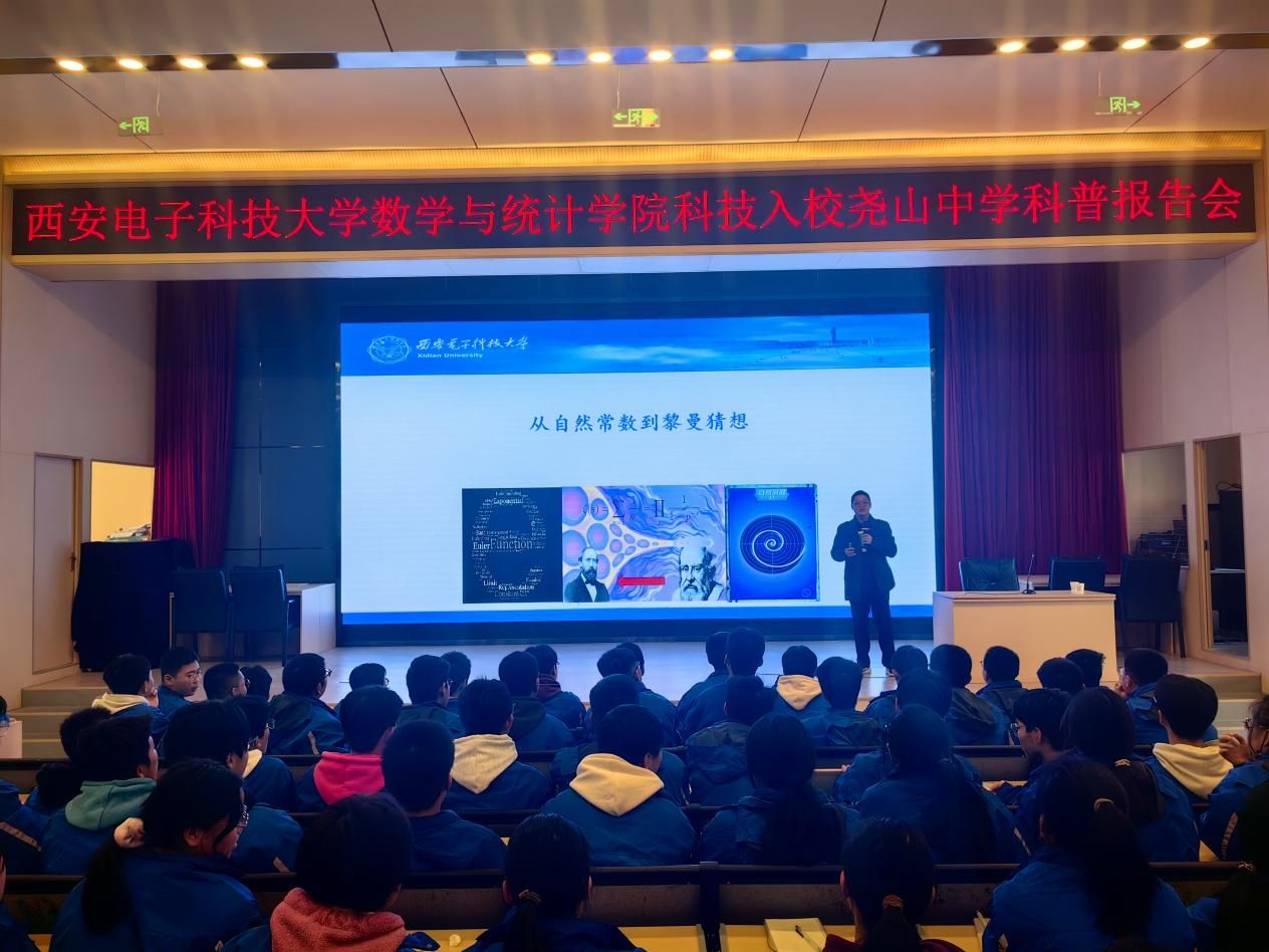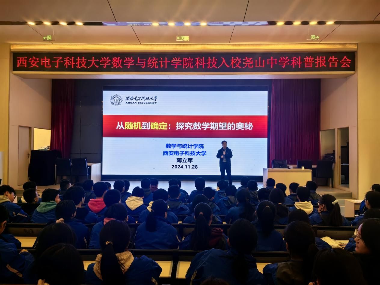 在尧山中学,执行院长薄立军和副院长吴事良分别带来了一场精彩的科普讲座。薄立军老师以《从随机到确定:探究数学期望的奥秘》为主题,用通俗易懂的方式向同学们阐释了数学期望的基本概念与广泛应用,让学生们真切领略到数学在日常生活与科学研究中的独特魅力与实用价值。吴事良老师则以《从自然常数到黎曼猜想》为题,引领同学们深入探索数学领域的经典难题,激发了学生们对数学奥秘的强烈好奇心与探索欲,为乡村学生打开了一扇通往数学奇妙世界的大门。