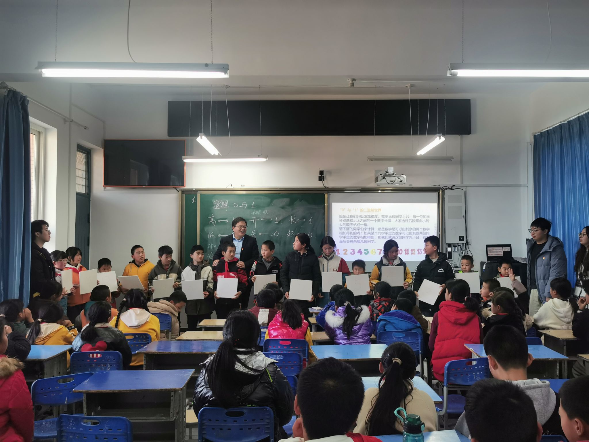 在罕井镇东党小学,学院党委书记杨生海一行与小学领导班子进行了座谈,详细了解了东党小学的学生、师资、校园建设等情况,为师生们送上了学习用具和文具,以实际行动支持乡村教育事业。捐赠仪式后,韩邦合老师为东党小学师生精心呈现了一场题为《神奇的“0”和“1”》的数学科普报告。韩老师通过循序渐进、由浅入深的讲解方式,带领学生们深入探索斐波那契数列的神奇奥秘,让孩子们在趣味互动与实际案例中充分感受数学的奇妙魅力与实用功能。