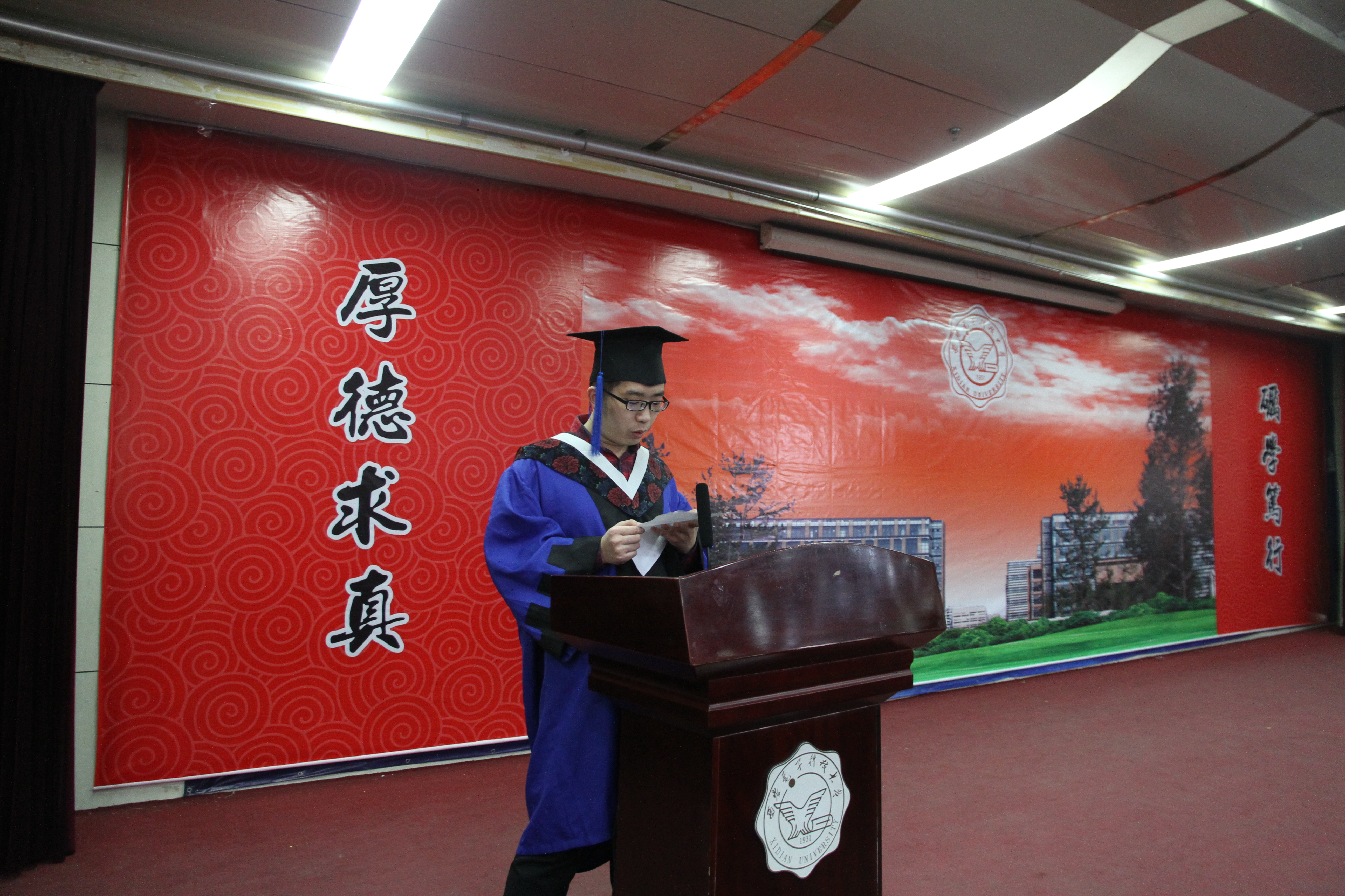 最后刘三阳院长讲话,再一次对毕业生顺利完成学业表示祝贺,刘院长说到:同学们学业顺利完成了,但学习不能结束;拿到了文凭,还要注意培养自身的文化;获得了学位,还要有品位;同学们已有一定的专业知识,更要有见识、有胆识,不忘常识,同时要学会赏识他人;最后祝福同学们身心健康、工作顺利、事业有成、前程似锦,做一个有智力又有智慧的人,并希望大家关注母校发展,常回来看看。