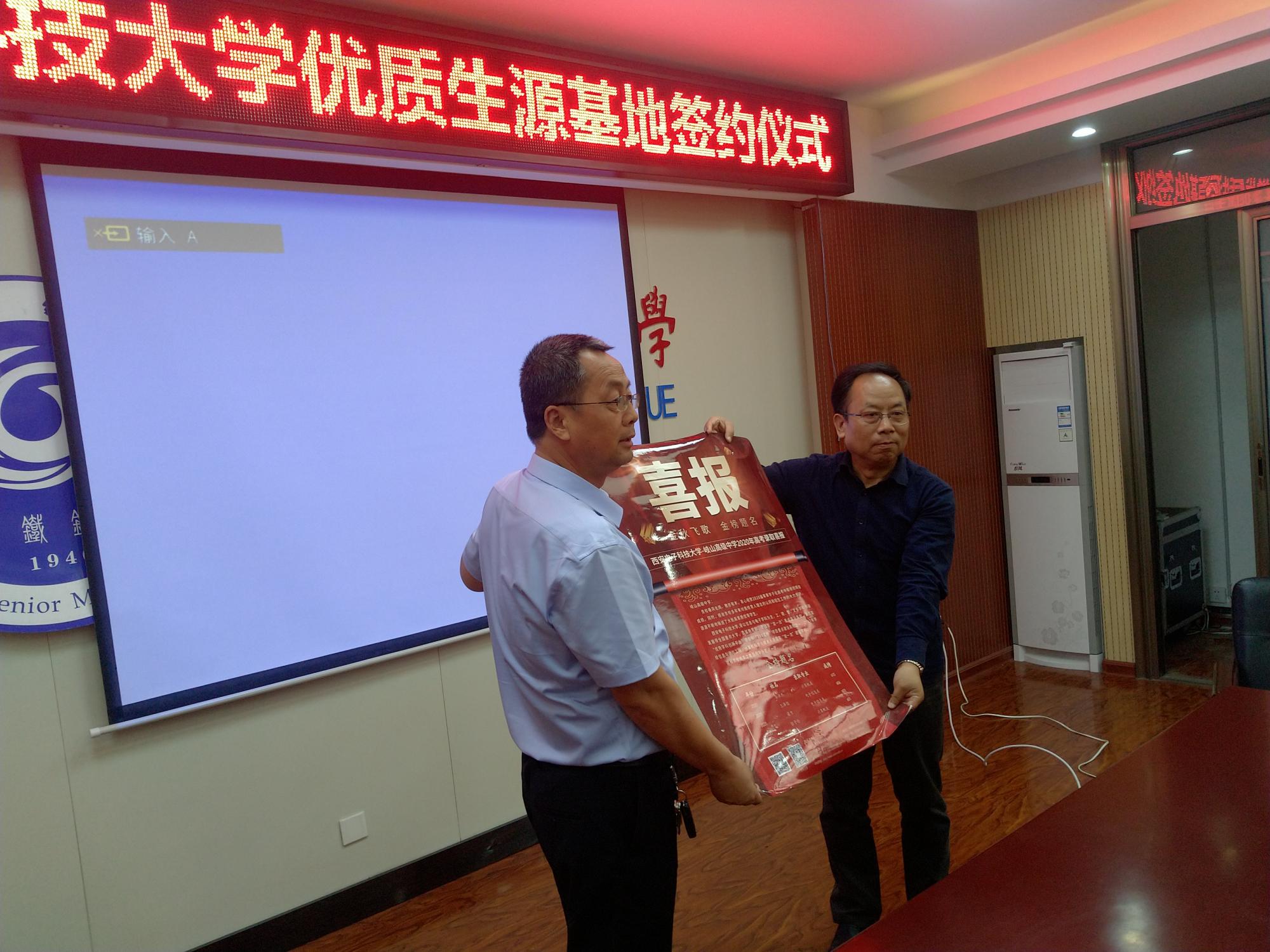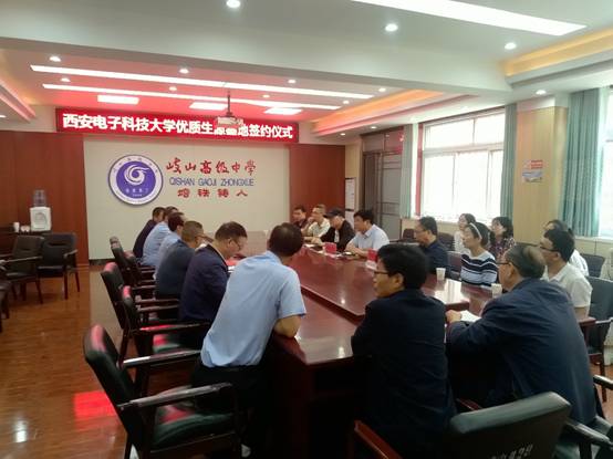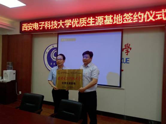 授牌仪式上,杨生海书记简要介绍我校的校史、学科建设情况、办学成就、招生政策等概况,希望双方以共建优质生源基地为契机,为更多岐山高级中学学生报考西电搭建平台。岐山高级中学校长杨宗敏则对我校的声誉和社会影响力给予高度的评价,表示愿意将更多优秀学生送往我校继续深造,希望双方进一步加强联系与交流,共同推动教育事业的发展。座谈之后,杨有龙副院长代表学校与岐山中学校长杨宗敏签约,杨生海书记为岐山高级中学授牌,李俊民教授向岐山高级中学赠送2020年招生喜报。