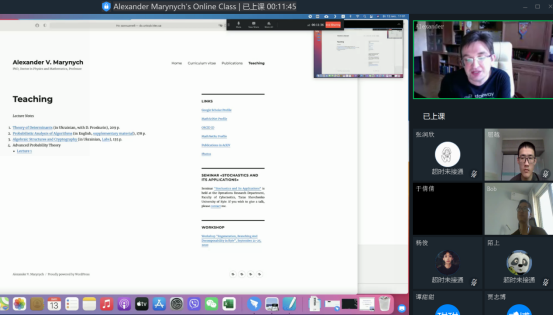 7月5日~15日,Alexander Iksanov教授给学生带来了32学时课程《Lectures on generating functions, Laplace transforms and characteristic functions》(母函数、拉普拉斯变换和特征函数讲义),两位助教老师和30名学生参与了全程的学习和交流。Iksanov教授讲解细致深入、板书条理清楚,耐心回答学生的提问,主动了解学生的问题和诉求,每次课后都及时在学习群分享课堂讲义和课堂录像。