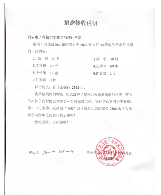 为深入贯彻落实党中央定点帮扶工作要求,进一步巩固拓展脱贫攻坚成果,结合党史学习教育我“我为群众办实事”实践活动,best365亚洲版登录设立了乡村振兴专项项目,开展相关精准帮扶。2021年9月29日,best365亚洲版登录王晓华副院长带队,支部书记、团委书记、教师入党积极分子、概率统计系教师部分老师一行6人,分别赴蒲城县罕井镇东党小学和尧山镇闫家村开展项目推进,捐献物品、收集数据、携手共建活动,切实宣传、推进乡村振兴。