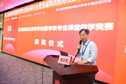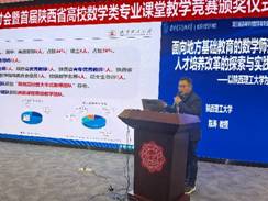 陕西省高等学校教学指导委员会数理类工作委员会副主任兼数学组组长、西安电子科技大学刘三阳教授在讲话中首先感谢各位领导、嘉宾和老师的光临,然后介绍了本次会议的宗旨和首届陕西省高校数学类专业课堂教学竞赛的情况。