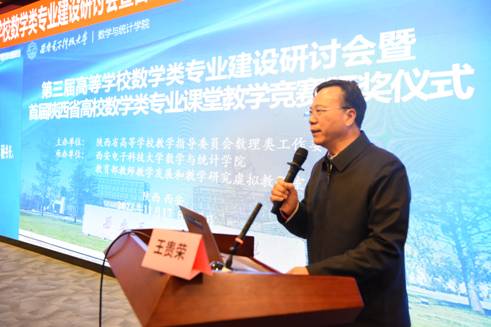 陕西省高等学校教学指导委员会秘书长、西安科技大学副校长王贵荣教授在讲话中祝贺第三届陕西省高等学校数学类专业建设研讨会胜利召开,他指出,这次会议是我省高等学校数学类专业建设成果的展示和交流,对提高我省高校数学类专业建设水平和数学人才培养质量具有重要作用,对高校教学指导委员会其他专业的工作委员会具有示范和借鉴意义。