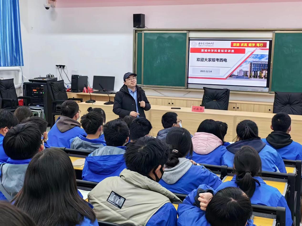 与此同时,在蒲城中学的招生宣传会上,面对同学们热情的提问,学院党委书记杨生海简述了学校的发展历史和招生政策。针对同学们对学院学科特色的疑惑,刘振华教授以《浅谈密码》为题开展教育讲座,讲述了密码学的前世今生,通过一个个精彩的小故事,展示了密码学工作的重要意义,生动地为同学们讲述了如何学以致用。讲座结束后,志愿者葛瀚元激动地说:“在乡村振兴的道路上,教育无疑是关键的一环,我们通过这样的科普教育活动,不仅可以提升孩子们的科学素养,更能激发他们对未来的憧憬和追求。”