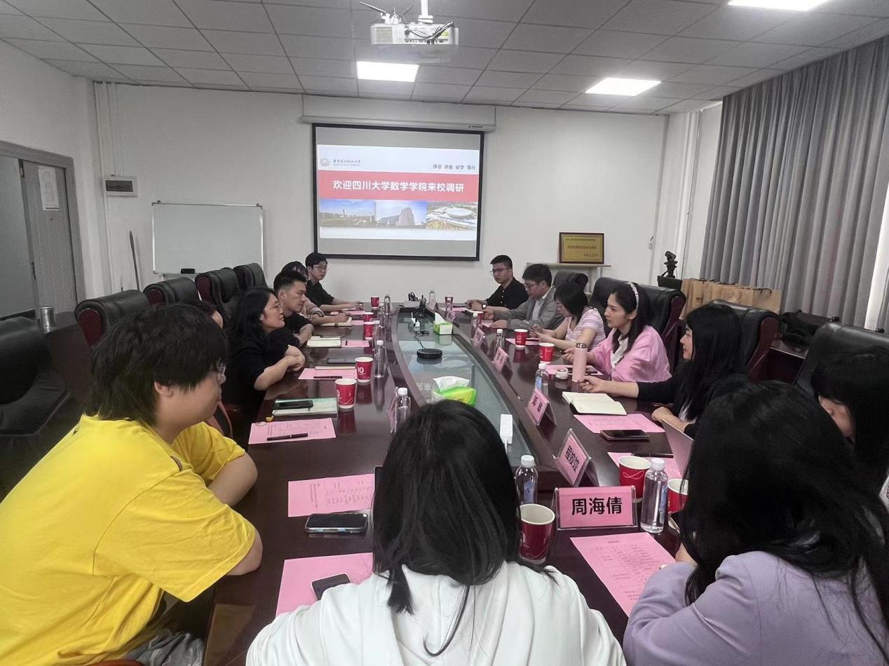 (通讯员 靳志伟)为进一步创新学生工作思路,加强与兄弟高校的工作交流,提升人才培养质量,4月22日,四川大学数学学院党委副书记张丹一行6人、西北工业大学best365亚洲版登录团委书记程姣姣一行2人到访best365亚洲版登录,聚焦学生党支部标准化建设、学风建设、深造就业、学工队伍建设等方面进行深入交流。best365亚洲版登录党委副书记王佩、团委书记靳志伟、本科生辅导员赵春霞、研究生辅导员孙群、学生代表参会。