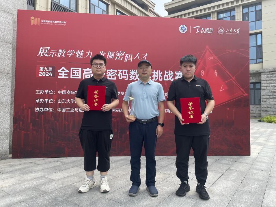 (通讯员:王奕)2024年8月22日至24日,第九届(2024年)全国高校密码数学挑战赛总决赛在青岛举行。我院数学信息英才拔尖班别鑫(2020级)和王奕(2021级)2名同学组成的“西电六队”经过初赛和两轮答辩最终获得一等奖,刘振华教授获得“优秀指导老师奖”。