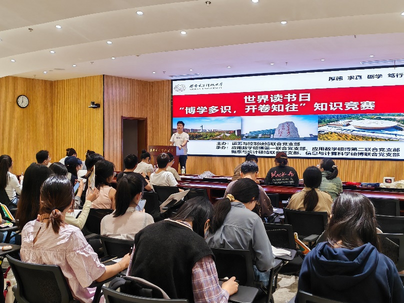 (通讯员王宇东)为深入学习贯彻党的二十大精神,弘扬中华优秀传统文化,筑牢文化自信。4月21日,由best365亚洲版登录运筹与控制硕博联合党支部主办,应用数学硕博第一联合党支部、应用数学硕博第二联合党支部、概率与统计硕博联合党支部和信息与计算科学硕博联合党支部协办的“博学多识,开卷知往”主题党日活动于网安大楼103报告厅举行。活动由运筹与控制硕博联合党支部书记王宇东主持。